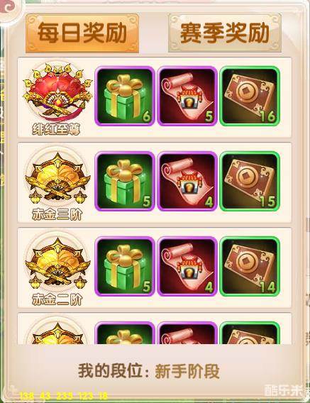 3. 在界面内,点击“段位礼包”可以查看每个段位的每日奖励和赛季。