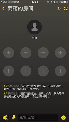 在heyhey语音中,我们可以看到球球大作战的房间,这些都是其他玩家开好的房间,我们可以直接进去,当然想要只跟直接好友在一个房间,那么点击右上角的添加按钮,即可创建一个自己的房间。