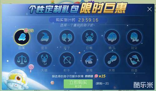 星座孢子一共有12个,活动只能购买一个,每个18元,可以用RMB直接购买,购买成功后还可以获得15个棒棒糖!