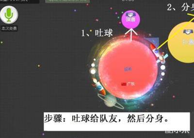 有一种情况是这样,你没有把握分身后能不能吃掉对手。这时候你吐给队友一个稍微大的球,然后再分身,分完后,队友补刀。这招团战也经常见到,而且屡试不爽。