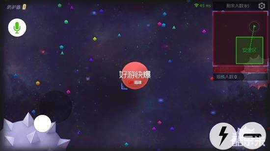 在安全区边缘的时候,我们可以吸收一下附近的能量孢子,也可以欺负一下比自己小的敌人,当遇到比自己大的,可以绕着尖刺走,尽量躲避它们。