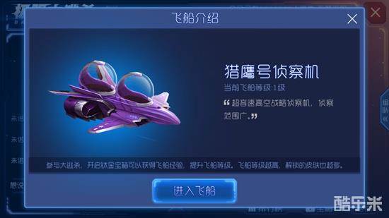 目前小编的飞船是1级飞船,想要提升飞船等级,那么就需要不断的参与极限大逃杀挑战,获得钛金宝箱,开启宝箱就可以获得一定的经验值,只要足够的经验值,就能提升飞船等级了。