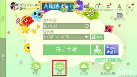 进入游戏后,点击首页下方的“关系”按钮,即可打开自己的好友列表。