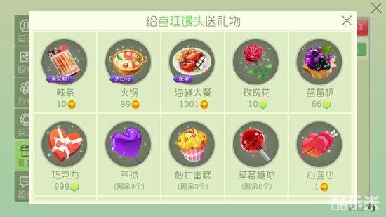 在送礼界面中可以看到,第三个就是海鲜大餐,每一个海鲜大餐需要1001个蘑菇,我们点击海鲜大餐就可以送给好友海鲜大餐了。