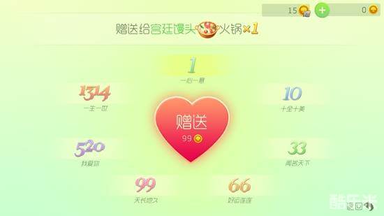 在点击海鲜大餐后,还会出现选择数量,如果只送跟一个,就直接点击中间的“赠送”桃心即可,系统为了方便大家,还增加了送10个、33个、66个、99个、520个、1314个等便捷按钮,点一下周围的数量即可赠送相应数量的礼物。