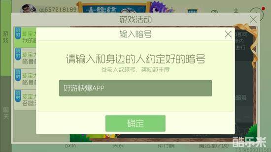 进入活动后,我们需要输入暗号,当然也可以输入其它自己想要的暗号,与自己的好友一起组队。