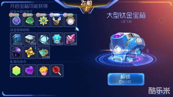 在球球大作战大逃杀模式中,如果我们获得排名较为靠前的胜利(大约在30名以内),就可以获得钛金宝箱奖励,排名越靠前,获得的钛金宝箱越高级。
