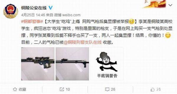 吃鸡玩家网购AWM气枪显摆 惨遭警方平底锅警告!