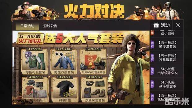 活动介绍:五一狂欢,集假日贺卡,换野性沙漠套装,具体兑换规则请查看详情。