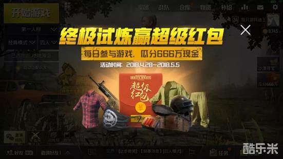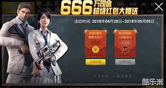 最后编辑于7年前鸡友们,五一小长假已经开始啦,你们打算去哪嗨皮呢?刺激战场为你们准备了一系列五一活动哦,巨额现金红包、丰富的活动内容、神秘的奖品,你们还在等什么!