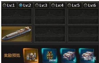 在这里可以看见我们将要攻击的舰船模型,以及奖励可以看见lv2的难度会掉落50个研究院升级材料,20000经验,14个10W银币。