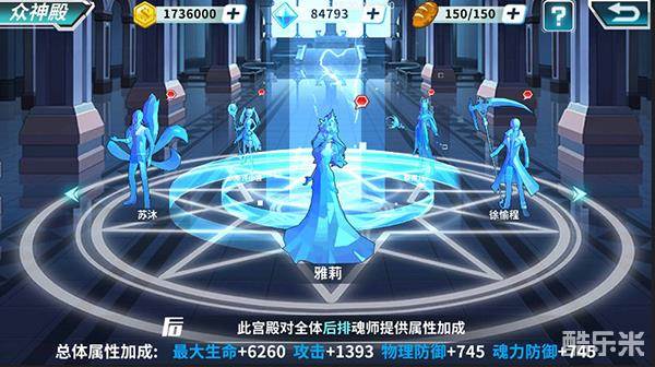 45级开放的众神殿里对属性加成还是很高的,一次投入永久受益!最后来说说最复杂的角色系统,进阶里说套装加成一定不要忽略了,有时候就是这些细节提升导致关卡打不过,还有觉醒,随着游戏的发展,觉醒石或者觉醒石碎片的投放,角色觉醒过后强度将会有飞一般的提升,一定要多多关注!精神空间里的境界提升也属于质的飞跃,这里需要冰髓和魂兽血。