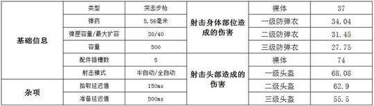 可以看到数据还是很华丽的,满配的射速除了狗杂其他的步枪谁都不服。