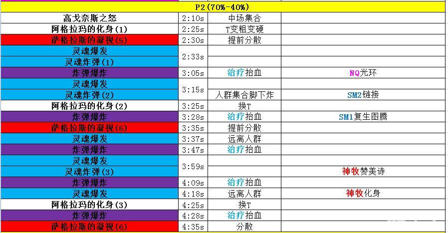 手法:需要注意的就是在AOE前刷新好圣言术灵;圣言术静尽量用来保住中凋零跑位而且伴随AOE的人.整个P1不难,难的是各种双点(朋友圈+凋零),朋友圈+凋零连续点同一个人(有免疫的被连点了直接开吧,不然就死了).