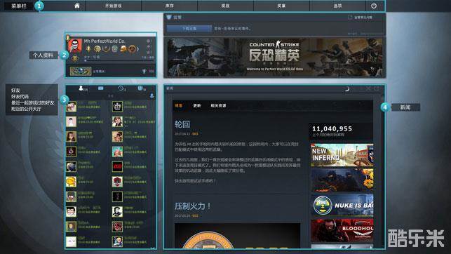 主界面:点击主界面(小房子),无论在哪个栏目均会回到如图的CS:GO主界面。