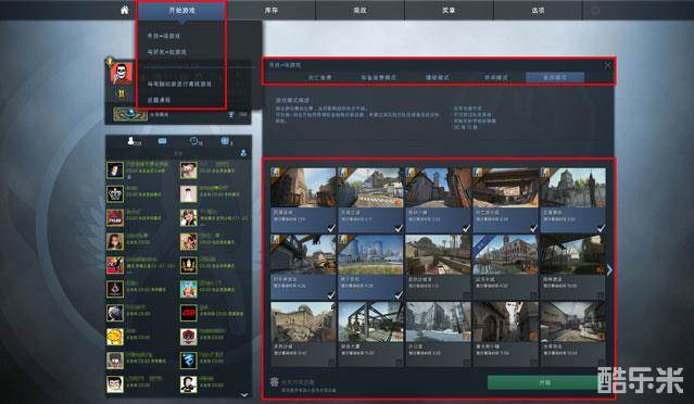 点击【开始游戏】、【寻找一场游戏】,则会进入模式选择界面,在【普通】里有五种模式分别为死亡竞赛、军备竞赛、爆破模式、休闲模式、竞技模式,选择模式和对应的地图,点击【开始】就可以开始一盘CS:GO游戏啦。