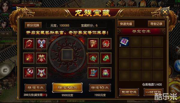 3、积分兑换:每寻宝1次能够获得1点的寻宝积分,玩家们消耗寻宝积分可以兑换装备、进阶材料等道具,还能进行男女装备的互换