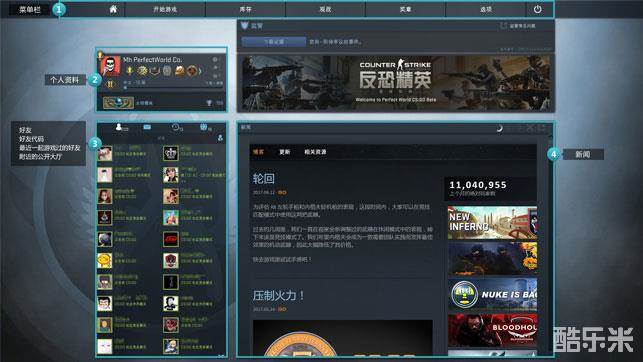 主界面:点击主界面(小房子),无论在哪个栏目均会回到如图的CS:GO主界面。