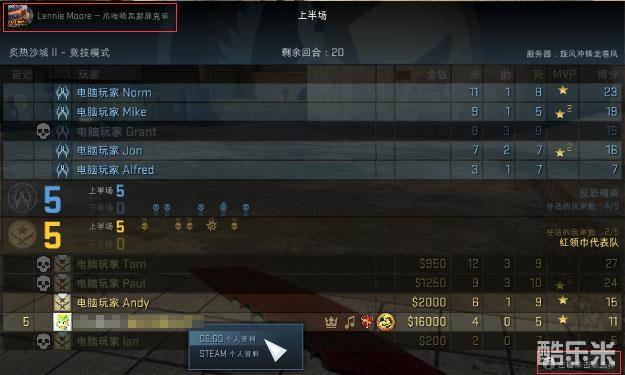 在计分板状态下,鼠标右键则会显示出鼠标光标,如右下角所示。之后左键任意玩家则可以查看CS:GO个人资料或添加好友。