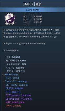 CS:GO武器的皮肤没有任何额外属性,是纯粹的外观,不会对游戏平衡性造成任何影响。每个武器皮肤分别有品质、磨损度、数聚™、纪念品等属性。