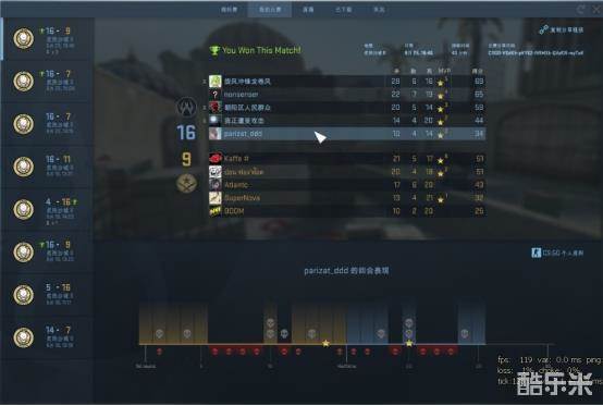 我的比赛中,会记录最近8场竞技模式比赛的数据,通过这里可以看到每盘比赛自己的表现,比如总得分、KDA值、比分、每回合表现、队友资料等。同时,在下载了录像之后,还可以回顾每回合的录像。