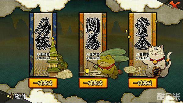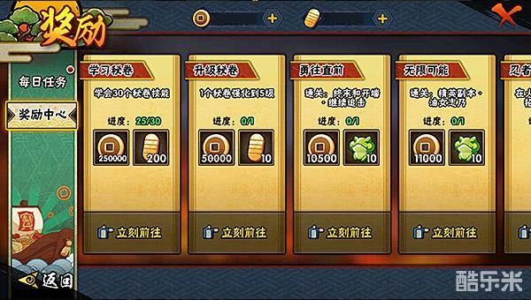 奖励中心:在游戏中达成一些成就,例如成功招募一定数量的忍者,成功学会一定数量的秘卷,达成后都可以获得铜币。