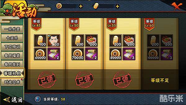 等级礼包:随着等级提升会赠送不等的铜币。