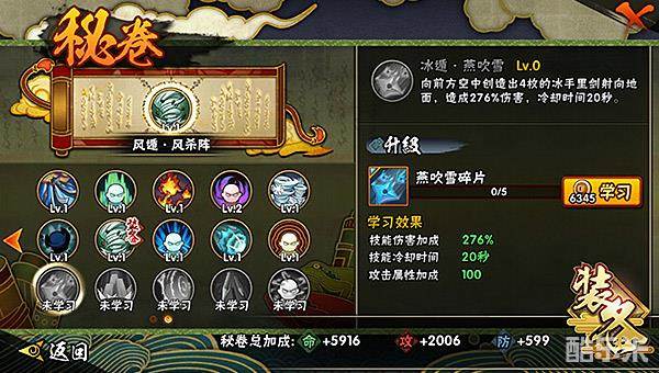 分析:该秘卷是从自身前方射出冰手里剑,对命中的目标不会造成任何浮空等附加效果,虽然能将目标击至自身方向,但这也对释放的准确性有着很高的要求。并且目标在被推至自身面前时,若没及时进行连招,还很可能被对方起手攻击。