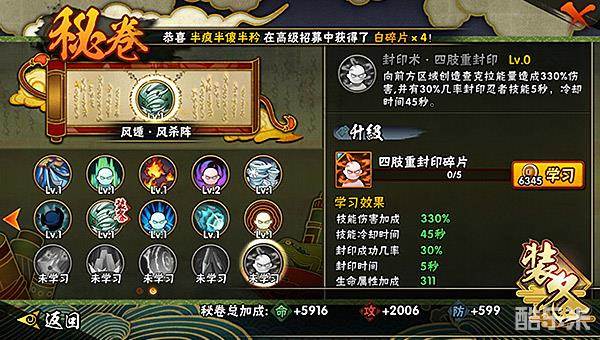 分析:秘卷在命中后,虽有几率封印住敌人的技能,但在初期1级时,冷却时间长达45秒,并且也只有30%的几率进行封印。在使用过程中,完全是就看大家的运气了。