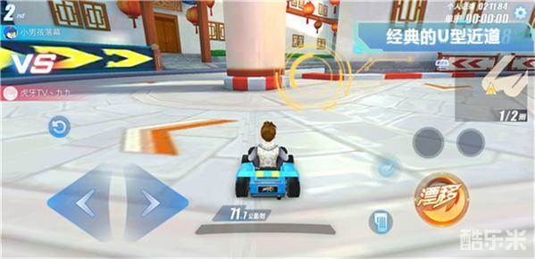 成功进入了右侧的近道后,紧接着需要通过一个经典的U型弯近道(下图标注处)。因为花坛的存在对这时赛车的漂移动作限制很多,操作空间很小。而且后方的U型弯近道非常狭窄,对车手的漂移能力考验较大,容错率很低。