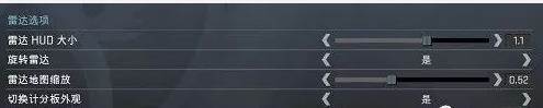 这个设置调小一点可以在雷达中看到整个地图,调大则可以更加准确地看到位置,但缺点就是看不到雷达外的情况。小编自己这项设置一般设置0.4,这样不会很小也能基本看到整个地图,通常队伍的指挥或者头脑级的任务一般设置的比较小,便于观察局势,突破手设的比较大,便于准确定位敌人位置。
