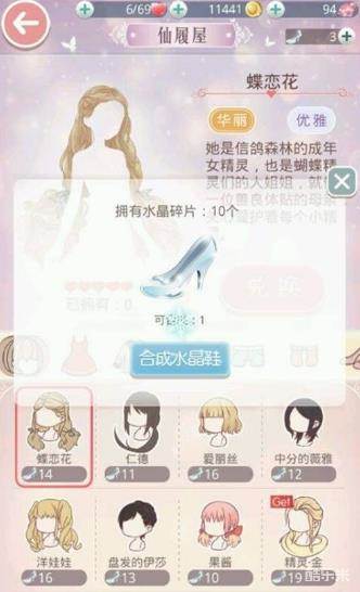 合成之后我们可以到仙履屋的购买界面寻找自己喜欢的发型、衣服等单品,因为拥有的水晶鞋数量有限,所以我们要选择性价比最高的来兑换!