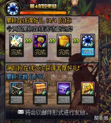 本次的累积在线好礼可以说非常给力,每天有一个免费的增幅器,累积站街20天还赠送一本黄金书,但这次的黄金书并不是站街3小时之后就会自动累积,需要我们手动领取增幅器后才会累积,每天挂机后,可一定要记得把奖励都领取到包裹里面。