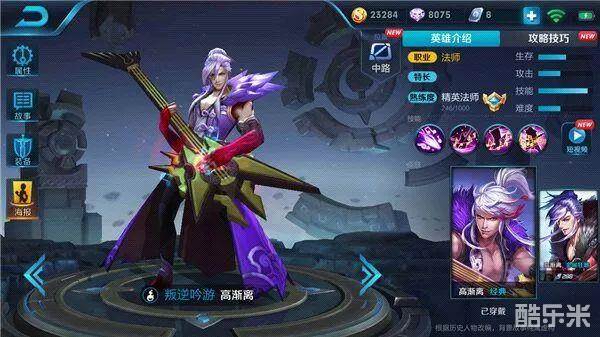 叛逆吟游高渐离,在如今的王者峡谷的法师英雄中,占据主流地位的绝对是拥有极强的风筝,远程输出能力的法师英雄,亦或是攻守兼备,能治愈能输出,持续作战能力极强的法师英雄,而高渐离显然不属于这两种类型的法师英雄。但高渐离在王者峡谷中的登场率以及胜率颇高,虽然没有达到非BAN即选的地位,但绝对深受众多召唤师的喜爱。其主要原因便在于高渐离所具备的极强的范围伤害输出能力,与其被动技能相搭配,再掌握合适的进场时机,即使己方处于绝对的劣势依然有机会能反败为胜。同时高渐离进场爆发的瞬间能获得极强的免伤能力,生存能力不俗,容错率较高。下面便进入高渐离的教学时间。