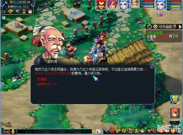 1、想要组成家族的玩家可以前往长寿村(113,120)李药师处,选择“我要成立家族”,NPC会询问家族名,在队伍中所有成员都同意的前提下,队长只要支付1000万梦幻币的造册费用即可开始创建家族任务。