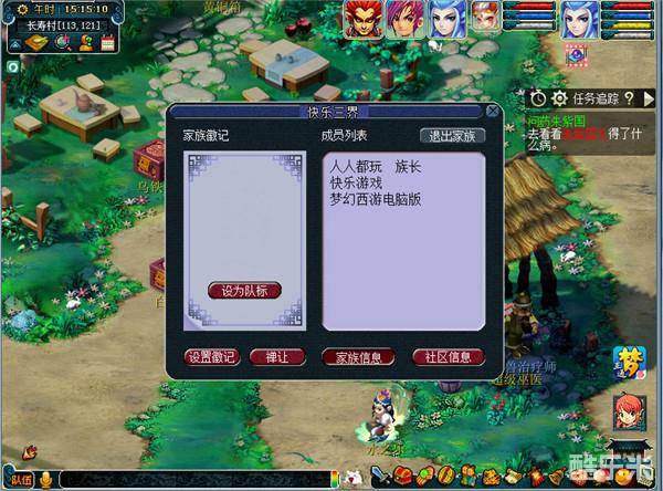 1、族长可以在长寿村(113,120)李药师处选择“我要查看族谱”进入家族设置页面。家族设置页面可以用于查看家族信息、设置家族徽记、禅让族长职位、查看社区信息。选择“设置徽记”可以进入家族徽记设置界面: