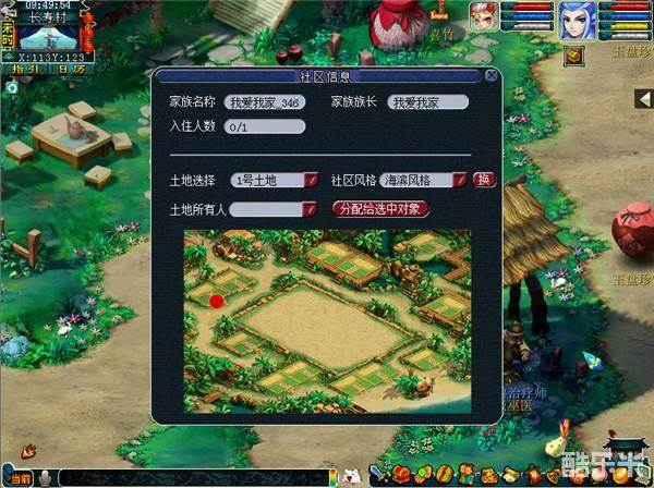 家族内成员可以在长寿村(113,120)李药师处选择“查看族谱”-“社区信息”-“详细信息”,或是在家族社区的社区总管处选择“查看社区状态”,打开家族社区界面,查看家族社区的详细信息。家族族长还可以在此界面给已经拥有家族社区土地的玩家重新分配其它编号的土地。如果对自己入住的地段不满意,请联系族长为您更换哦!