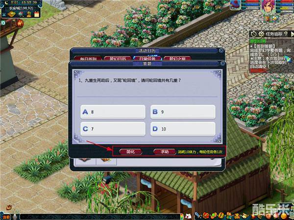 玩家每轮签到答题可以各使用1次“简化”和“求助”功能。使用“简化”可以去掉一个错误答案;使用“求助”可以发送当前问题给好友和帮众,看看谁能最快解答疑难~