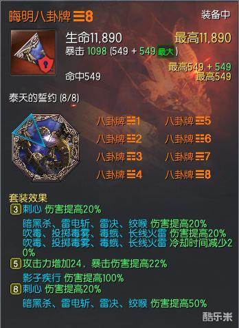 至于命中——命中的收益递减比穿刺严重太多,以“剡川大将军”为例,笔者的23星角色,即使1600命中,打“剡川大将军”也不会感觉明显的闪避,战斗后统计到的闪避率不超过1%。但基本需要4500 命中才能保证“剡川大将军”和“古拉”不会闪避……好在泰天八卦的8号牌,相对于黑风八卦就行了改进,现在已经可以拥有暴击命中的泰天8号,加上辣饺子(汤)的500命中,轻松可以堆出5400以上的命中。因此对于命中,只要保证你的泰天八卦牌24568全带命中属性就可以了,并不需要刻意去堆命中。