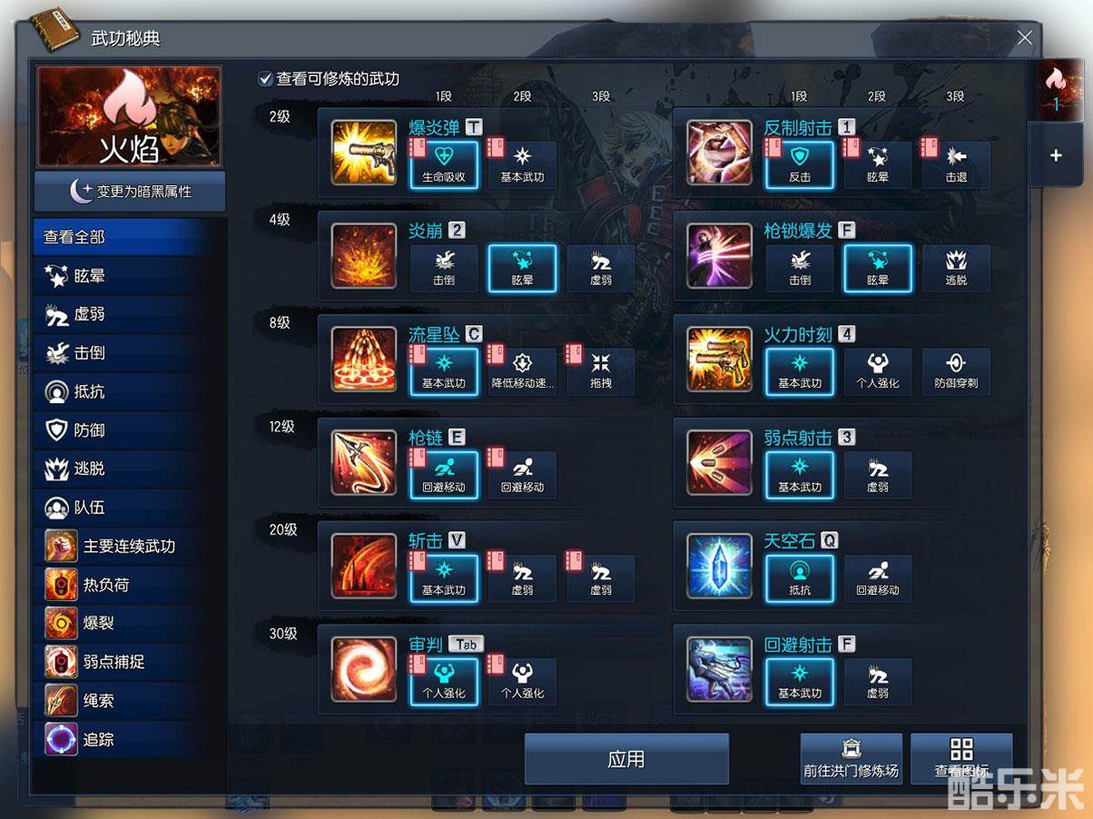 考虑到实际副本需求,当前主流优先级最高的控制技能为眩晕,推荐选择如下加点方式,在这种加点环境下,枪手一共拥有四个可合击的眩晕技能,但是不重置技能的前提下还是难以做到独自给四晕的,毕竟空中狙击需要较多的前置准备。此外会失去击倒能力,在特殊副本中应当做出适当调整。