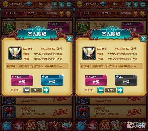 在灵魂图腾与财富图腾之后,那肯定就是圣光图腾了,提升圣光援护效果可这是可以直接增加攻击力的,只要将这个图腾培养好,那肯定可以帮助我们大幅度提升自身攻击力!而且这个图腾同样是可以无限升级的图腾哟!只要一直为其升级,就能获得越来越多的攻击力加成!
