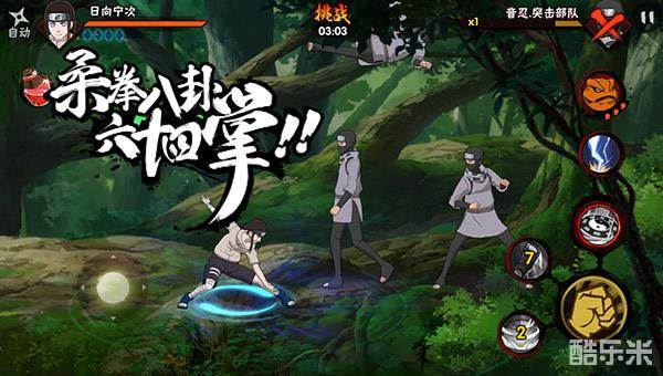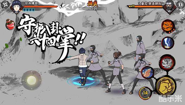 分析:日向一族的招牌技能柔拳,作为快速突进可用于起手,但容错率较低,若释放未命中容易被敌人反打。