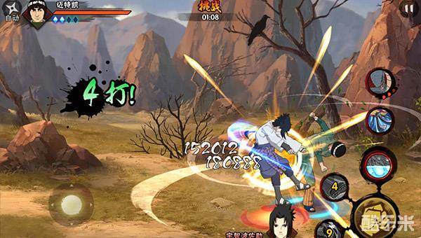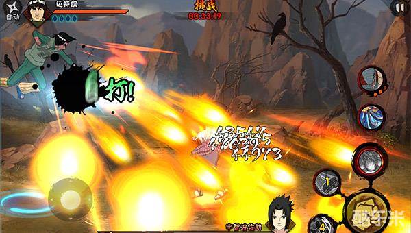 “木叶刚力旋风”带有击飞效果,可以接上连A或者直接接上“动力前奏曲”,之后继续接上连A和“朝孔雀”,一套技能至少1/3管血。
