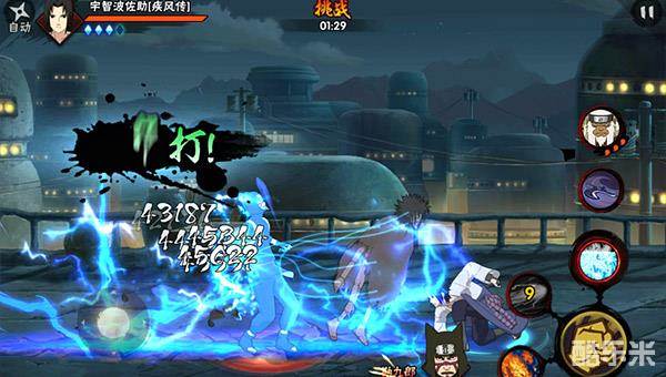 佐助-疾风传的3个技能范围都是全屏,只要稍微注意一下“千鸟锐枪”不要在极限距离情况下释放。佐助-疾风传基本靠技能来打出伤害,技能CD并不算长,只要CD好了就尽快释放,由于技能判定范围广,所以很容易命中,打出伤害的同时还能不停的蹭奥义点,为奥义技能的尽快释放做准备。不停的利用我们手长的优势来骚扰敌人,消耗到敌人崩溃。