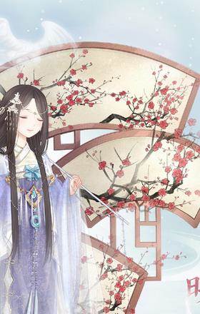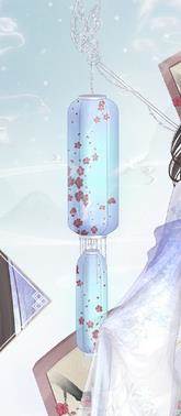 闭着的双眸好似在享受身后梅花的芳香,手中提举的灯笼刻上了梅花的印记。