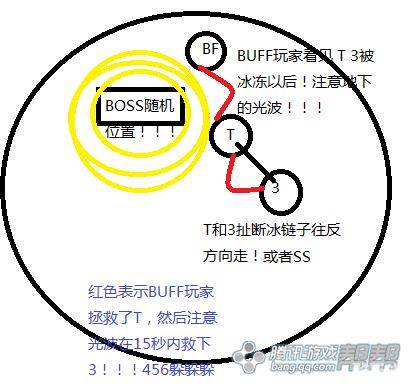 3号玩家是个近战.或者3号是远程!(反正23 号靠近BOSS BOSS提示语过了几秒会向离BOSS最近的人丢冰柱!只要牢牢记住!)23一定要靠近!其余玩家全体远离!特别是打死花狼获得BUFF的玩家!
