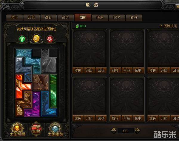 太阳烛照,获取的方式有,用四大神兽的图腾,青龙,白虎,朱雀,玄武,来进行打造合成,太阴幽荧,获取的方式有,用四大凶兽的图腾来进行激活打造,梼杌,穷奇,饕餮,混沌,这四大凶兽的图腾,合成出来的也是随机的,伤害,图腾格式也都是不一样的,那么好了,图腾就到这里,当获得这十大图腾的时候,我们要根据自身情况去把他们全部拼凑起来,打造成一个完美的图腾,可以根据获得不同类型的图腾进行拼凑的,多的图腾进行回收获得图腾精华来升级,当拼凑出来的图腾,拼满这个图腾,相信,你基本已经在贪玩蓝月这款游戏里面霸主一方了。