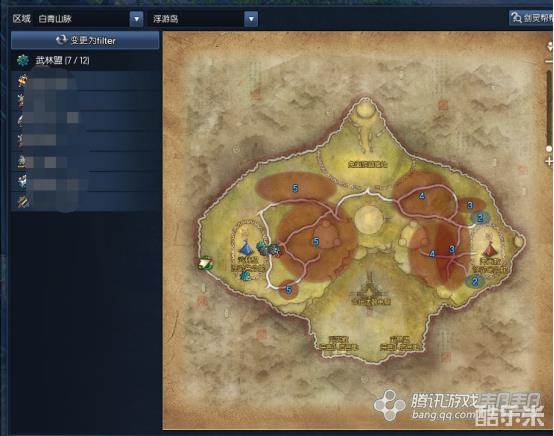 ⑤地图上除了传统地会标记各种任务区域以外,还非常良心地将敌我势力标记了出来,分别以各自的势力图标代替(武林为蓝,浑天为红,死亡后变为灰色),不过刺客和召唤这种可以隐身的职业,在隐身后是不会在地图上显示的,需要大家注意哦。
