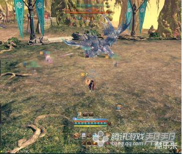 ③两大势力阵营的营地中,设有仓库管理员、灵气兑换员、交换商人3个基本NPC以及若干弓箭守卫NPC(守卫仇恨范围极大且伤害较高,攻击带有击退效果),营地中还有3个龙脉,上方龙脉通往地图中央偏上的兔面族营地附近,中间龙脉通往敌对势力阵营门口,下方龙脉通往浮游岛下层法器怪物的各势力分部。