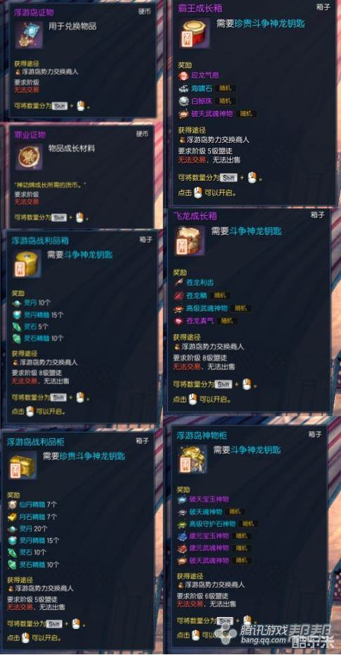 其中“浮游岛证物”为新的PVP星系神功牌以及PVP斩杀手套兑换所需材料,“罪业证物”为斩杀手套升级所需材料。